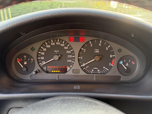 Voorzien van een smetteloos zwart sportinterieur en originele 17" M3 velgen. Ook is de originele radio/cd wisselaar nog aanwezig, met tevens een plugin om via de telefoon via bluetooth Spotify muziek af te spelen.