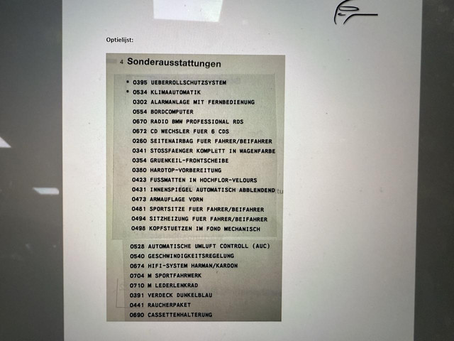 De volledige onderhoudshistorie is aanwezig. Deze auto is door Auto Van der Burght geïmporteerd uit Duitsland van een verzamelaar en is ‘unfallfrei’. Dit betekent dat deze auto in 25 jaar niet betrokken is geweest bij grote schades. In Duitsland heeft de auto aantoonbaar 4 eigenaren gehad.