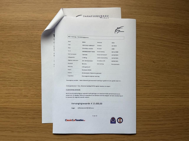 De auto is onlangs getaxeerd met een vervangingswaarde van € 15.000, taxatierapport ter inzage. Te verzekeren voor circa € 25 per maand en de MRB bedraagt ongeveer € 78 per maand. Dat betekent dus voor net € 100 per maand genieten van deze fantastische cabriolet. Daarnaast is deze cabrio een zeer waardevaste investering die zijn oudere E30 broer zal volgen in waarde ontwikkeling, deze zijn inmiddels niet meer te betalen.
