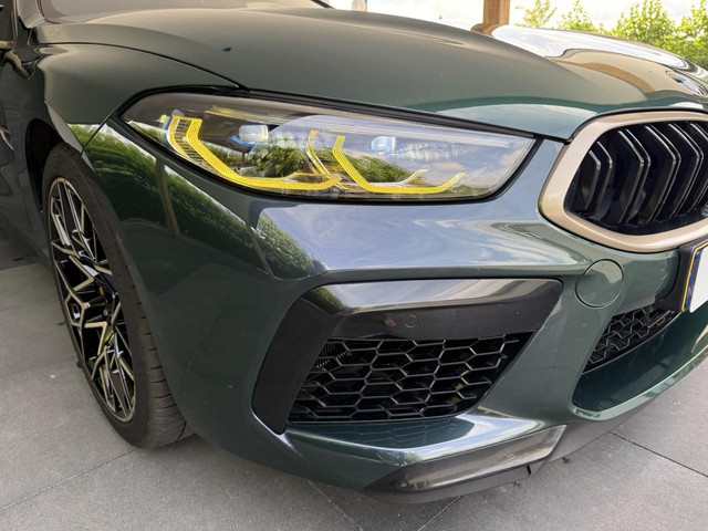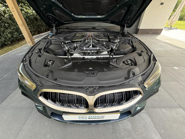 Daarbij heeft deze M8 een fantastische kleurstelling Aurora groen gecombineerd met goudkleurige sierlijsten en een carbon dak, 20" zwart/gouden velgen. Daarnaast uitgerust met een cognac interieur en een alcantara dakhemel, met stiknaden in grijs. Daarbij zijn de interieurlijsten in pianolak. Al met al een erg smaakvolle combinatie voor zowel het in- als exterieur en daarbij een erg exclusieve verschijning. De groene lak kleurt bij bepaalde weeromstandigheden en lichtval in blauw, een heel bijzondere gewaarwording.