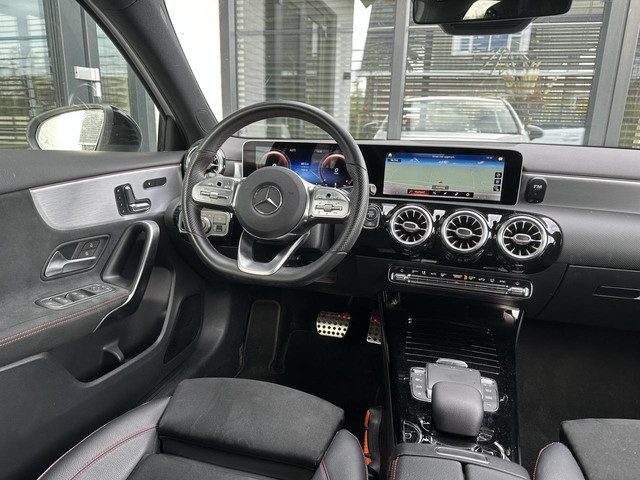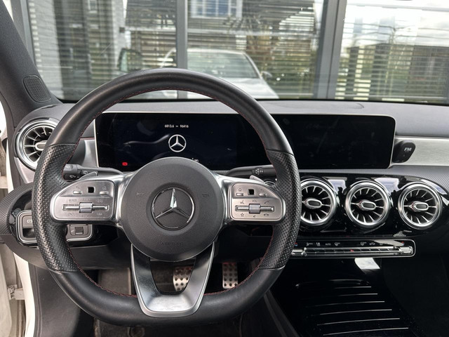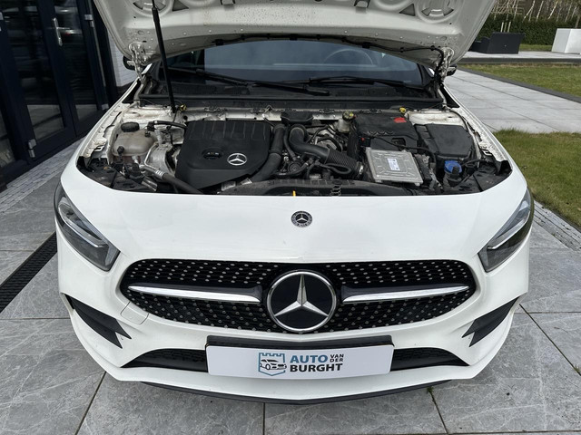 Daarbij is deze A voorzien van een courante kleurstelling met Poolwit lak gecombineerd met een zwart glazen panorama dak, 18" zwarte velgen en privacy glass. Daarnaast uitgerust met het populaire AMG styling pakket. Dat betekent binnenin onder meer sportstoelen in lederlook Artico en in combinatie met het prachtige dashboard, het breedbeeldscherm en de LED sfeerverlichting is dit, zeker in het donker, een genot om in te rijden.